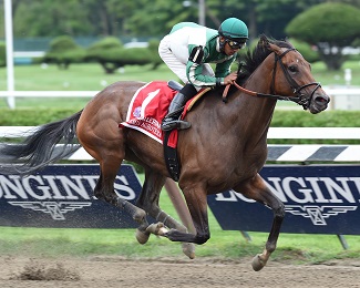 Maragh was "gearing down" at the conclusion of Artemis Agrotera's superb win (NYRA/Coglianese Photo/Adam Mooshian)