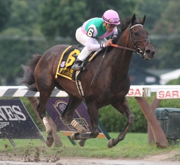 | Close Hatches sailed over the muddy track at Saratoga in Friday's Personal Ensign