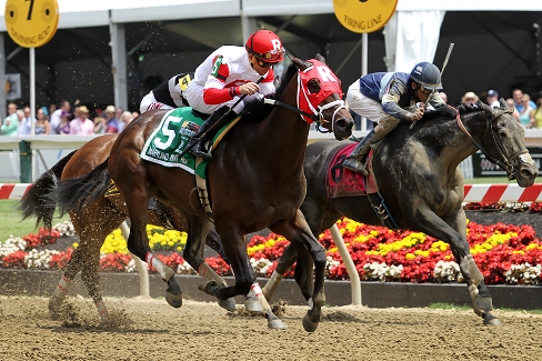 Pressing 2014 Maryland Sprint winner Happy My Way (Wilko) from second through