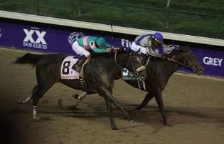 | Gomez coaxing Blame across the wire, upsetting the mighty Zenyatta in the 2010 BC Classic