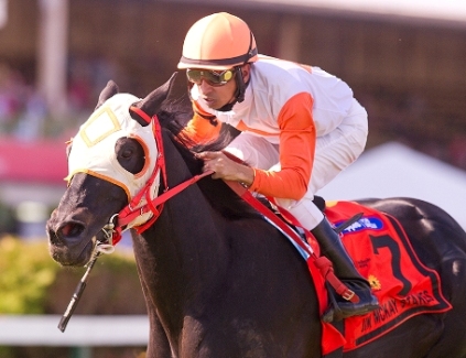nearly $2.5 million in purse money from six seasons of racing. The dark bay