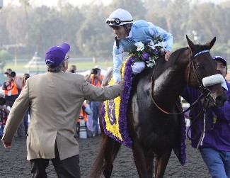 "This mare's been running hard, and she actually ran against the boys a couple of times. (Trainer) John (Shirreffs) did a tremendous job getting the filly's confidence back up underneath her and having her ready for today. And that's all it was. Really kind of getting her confidence back, and like I said, he did a tremendous job doing that."