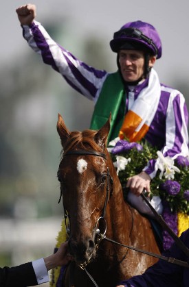conditioner Aidan O'Brien praising Santa Anita's Pro-Ride surface in advance of sending RIP VAN WINKLE (Ire) (Galileo [Ire[) in the Classic