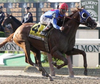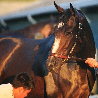 Quality Road (Elusive Quality) balked at loading into the gate, and no shoving, pushing or whip cracking could get the irate sophomore to enter his drawn post of stall 12. The starters blindfolded the bay colt and, after leading him in a circle, finally managed to load the runner. As soon as he realized what had happened, though, Quality Road began bucking and kicking, leaving his handlers no choice but to back him out of the stall.