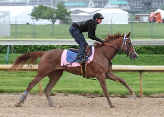 Cross said Monday that Blind Luck took some time to get a hold of the track, but beamed Tuesday after coming back to the barn. "She took to today's track like a duck to water," Cross said. "The track was squishy today and she loved it. Yesterday it was half-sealed, half-opened and had a different feel to it." Hollendorfer aims for a third career Oaks score, following successes by Lite Light in 1991 and Pike Place Dancer in 1996. Jockey Rafael Bejarano has the Oaks mount on Blind Luck as he seeks his first win in the race. Bejarano was widely criticized in Blind Luck's only loss this year, a troubled third in the Santa Anita Oaks (G1). "The one thing about Bejarano, you can bet he won't make the same mistake twice," Hollendorfer said. Regarding Blind Luck's drawing post position 5, Hollendorfer said, "I think that post is good. I was talking to Rafael this morning and we thought from the 5 on out to the 10 would be OK for us, so he's happy with that. "He's ridden this filly a lot of times, so he knows this filly well and he knows the track, and he's a very good rider, so you couldn't ask for much more than that. "She's been training well. She went through the mud pretty nice this morning and it didn't look like it bothered her at all." AGE OF HUMOR (Distorted Humor) drew post position 4 for Friday's Kentucky Oaks, a spot that trainer Mike Maker was pleased with. "She did fine," Maker said. Maker also reported that Age of Humor galloped 1 3/8 miles Tuesday morning over a sloppy Trackside Louisville surface with regular exercise rider Marvin Jimenez up. Exercise rider Patti Barry was aboard AILALEA (Pulpit) Tuesday morning at Churchill Downs, but the New York-based star jockey John Velazquez will be at the controls Friday when she goes postward in the 136th edition of the Kentucky Oaks. Barry sent the Tempted S. (G3) heroine through a gallop of 1 1/4 miles, along with a visit to the gate, following which trainer Todd Pletcher confirmed that Velazquez would ride his filly in the Run for the Lillies. The issue of a rider for Ailalea had been up for grabs because of the situation surrounding another three-year-old filly of Pletcher's, Devil May Care. That one was being considered for a run in the Oaks, as well as a run in Saturday's Kentucky Derby against the boys. There was further consideration to possibly enter Devil May Care in both races. In the end, Pletcher chose to enter Devil May Care only in the Kentucky Derby, meaning Velazquez would ride her there and be available to ride Ailalea in the Oaks.