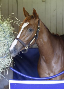 paddock Thursday morning before galloping 1 1/2 miles and also schooled in the