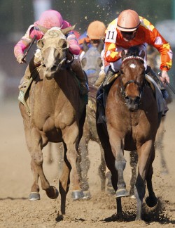 | Blind Luck (outside) just nipped Evening Jewel on the Oaks wire
