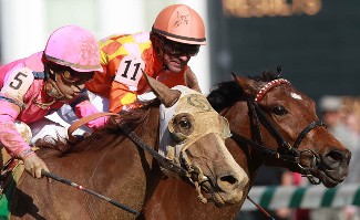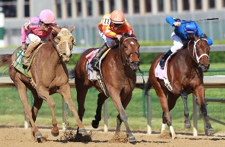 | Tidal Pool (inside blue) led the way in the Oaks before being passed late