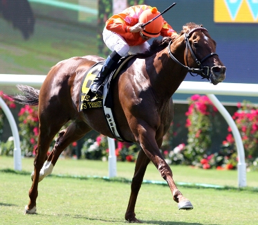 "It was a beautiful ride -- I think I'll vote for Mike Smith for the Hall of Fame next year," Cassidy quipped. "You've got to get this horse to relax, that's the key, and today Mike got him to relax and (Tom's Tribute) was the most professional of any race he's run. We had originally planned on the Del Mar Mile (August 24) and not this race, but then I changed my mind." "He really relaxed today," Smith noted. "That's the key with this horse. It was nice having that pace up front. We sat in right behind him (Horizontalyspeakin) and were real comfortable. Because he was so relaxed, when it came time he had lots. He won like he wanted to. I have to give all credit to Jim. He pointed this horse for this race and he was ready." Summer Front continued his status as a Grade 1 bridesmaid. Class climber Spring Up closed for third, besting Horizontalyspeakin, his stablemate from the John Sadler barn. Unbridled Command and Cogito rounded out the order of finish. Named in honor of the late Tom Braly, who passed away in 2010, and campaigned by his widow, Marilyn, Tom's Tribute sports a mark of 12-5-3-1, $442,880. The chestnut did not make his racecourse debut until last summer and has been on a learning curve ever since. He soon revealed his ability by breaking his maiden second time out over Hollywood's Cushion Track. After placing in two entry-level allowances on the Del Mar turf, he roared from well back to clear that condition at Santa Anita, and booked his passage to stakes company. Tom's Tribute shortened up to about 6 1/2 furlongs on Santa Anita's downhill turf for the October 20 Uniformity, where he rallied impressively to capture his stakes debut. Up to the Grade 2 level for the December 26 Sir Beaufort over a mile, he faded late after arguing the pace and wound up sixth. Tom's Tribute next got off to a slightly tardy start in the February 1 Arcadia at the same course and distance, but finished well for second to Winning Prize. Making his first Grade 1 foray in the March 8 Frank E. Kilroe Mile, the still-learning four-year-old was prominent early, only to tire to seventh. But Tom's Tribute began to turn the corner in the April 6 Thunder Road. He relaxed well off the pace, stormed 2 1/4 lengths clear, and equaled Wise Dan's course mark of 1:31.78 for the mile on the Santa Anita turf. Trying another Grade 1 tilt in the Shoemaker, he broke a bit slowly and steadied early, but flew late to dead heat with Silentio for third. Tom's Tribute put it all together in the Eddie Read. "I don't know what's next," Cassidy said, "but we'll be thinking about the Breeders' Cup." Bred by Laura M. McKinney and Ouisha McKinney in Kentucky, Tom's Tribute was a $60,000 Keeneland September yearling. Marilyn Braly purchased him as a two-year-old in training at OBS March for $310,000. He was produced by the stakes-placed El Prado mare Halloween Fun, and his fourth dam is Grade 1 victress Chain Bracelet, whose descendants include multiple Grade 2 winner D' Funnybone. This is the family of Grade 1 queen Zoftig, dam of Grade 1 winners Zaftig and Zo Impressive, and further back, one finds champions Swale and Forty Niner. Bet Horseracing Free Online at TwinSpires.com