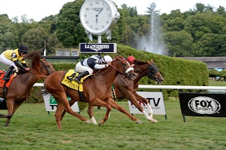 Main Sequence flashed his tail, but snatched the spoils from the blinkered Imagining (NYRA/Adam Coglianese Photography/Chelsea Durand)
