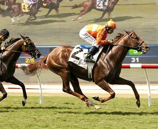 "I like going back from a mile and an eighth to a mile," Cassidy said of the cutback from the Eddie Read. "I thought that was the one advantage I had. When I saw the first fractions I thought 'Oh, man, this is sweet.' Then it was just leaving it up to Mike (Smith), who is as good as anybody at reading a race.