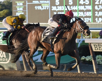 Paulassilverlining was content racing in midpack on the inside for the first half-mile as Evrybdymstgetstonz posted an opening quarter in :22 2/5. Bobby Flay's homebred and 4-5 favorite, Paris Bikini vied for the lead on the turn but faded just as it looked like she might take over. Evrybdymstgetstonzd continued to lead the field through four furlongs in :46 as eventual runner-up Skipalute pressed the pace on the outside. Paulassilverlining angled to the outside for running room around the turn and swung four wide into the stretch. The daughter of Ghostzapper rallied to take over in midstretch and pulled away in the final furlong to prevail by 1 1/4 lengths. Paulassilverlining covered six furlongs over the fast main track in 1:10 4/5 as the 5-1 third choice and returned $13.80 to her loyal supporters for the score. "I couldn't have been happier," Nevin said. "Jose gave her a perfect ride and everything worked out for us. She's very smart and responds well to your hands. She'll go easy, and she's got some speed too. We'll see how she comes out of this and go on from there. Right now she's so sharp, we're willing to keep her sprinting." Skipalute took second and was 2 3/4 lengths clear of Evrybdymstgetstonz in third. Save Rock and Roll, Paris Bikini, Darling Sky., Empressive Humor and Desert Image completed the order under the wire. Paulassilverlining banked $120,000 for her first stakes score to boost her bankroll to $173,950 from a 3-2-0-0 line. Paulassilverlining is out of the Grindstone mare Seeking the Silver, who is a full sister to stakes scorer Choctaw Ridge. She is a half-sister to multiple Grade 1 victor Dads Caps. The bay's female family also boasts Grade 2 winner Boone's Mill. Bet Horseracing Free Online at TwinSpires.com