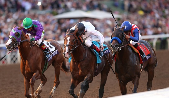 Bayern (inside), Toast of New York (center) and California Chrome (outside) ran in that order all the way to the BC Classic finish line (Charles Bernhardt/Horsephotos.com)