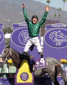 Dettori is a champion jockey in Europe and known around the world for his flying dismounts after important victories. In Goins's winning photo, he captures a delighted Dettori, arms and legs in the air, over the gray Donativum, owned by Princess Haya of Jordan and Darley Stable. The full frame, shot with a Canon 70-200mm zoom lens at 75mm, captured palm trees to the left of the winner's circle and the San Gabriel Mountains in the background. Honorable mention in the Photography category went to Alexander Barkoff, whose photo of a morning sunrise on the Fair Grounds backstretch was published in the New Orleans Times Picayune on November 9, and to Matt Wooley, whose photo of Big Brown winning the Kentucky Derby (G1) appeared in Daily Racing Form on May 6. The panel of judges in the Photography category comprised Ed Reinke, The Associated Press, Louisville, Kentucky; Jim Gensheimer, San Jose Mercury News and Dan Farrell, former photographer for New York Daily News. Eclipse Awards are given to recognize members of the media for outstanding coverage of Thoroughbred racing. Eclipse Awards are bestowed upon horses and individuals whose outstanding achievements have earned them the title of champion in their respective categories. Awards also are given to recognize members of the media for outstanding coverage of Thoroughbred racing. The Eclipse Awards are named after the great 18th-century racehorse and foundation sire Eclipse, who began racing at age five and was undefeated in 18 starts, including eight walkovers. Eclipse sired the winners of 344 races, including three Epsom Derbies. The 2008 Eclipse Awards ceremony will be held on January 26, 2009, at the Fontainebleau Miami Beach in Miami Beach, Florida. For hotel accommodations and Eclipse Awards dinner reservations, contact Michele Ravencraft at the NTRA's Lexington office, (800) 792-6872, or e-mail mravencraft@ntra.com.