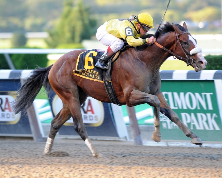 Phyllis retained Tempo as a broodmare following Alice's death, with the mare's first five foals all going on to become winners. The best of the group was Geefour, a Dixie Union gelding who won four races, placed in a stakes at Philadelphia Park, and earned $159,092. "Geefour also had physical issues that stopped him from being a good horse," Jones said. Encouraged by the potential Tempo and Geefour had shown, Wyeth bred the mare back to Dixie Union in 2008, and the resulting foal was a bay colt later named Union Rags. He would be Tempo's final foal prior to her retirement from broodmare duty. Wyeth decided to sell Union Rags as a yearling, with the colt being purchased by IEAH Stables for $145,000 at the 2010 Fasig-Tipton Saratoga Selected Yearlings sale. Wyeth, however, developed a case of seller's remorse and sent Jones to Fasig-Tipton's sale at Palm Meadows in February with instructions to visually inspect Union Rags, now a two-year-old, and to bid on the colt if he was pleased with what he saw. "I told her what the horse had grown into, and she wanted me to buy him back," Jones said. "I told her he was going to cost a lot more than what she had sold him for, but she still wanted to have a crack at him. We were hoping to buy him for $350,000 to $400,000, and fortunately he ended up in that range." Jones secured the colt for $390,000, and Union Rags has already more than recouped his purchase price, having earned $498,800 to date, including a $200,000 bonus for becoming the first graduate of the 2010 Fasig-Tipton Saratoga sale to capture a graded stakes at Saratoga Race Course when he won the Grade 2 Saratoga Special by 7 1/4 lengths in August. His other victories are a 1 3/4-length debut score at Delaware Park in July and a 5 1/4-length romp in the Grade 1 Champagne at Belmont Park earlier this month. Union Rags' two-year-old success has been a function of the colt's physical ability as well as his intelligence and maturity, Jones said. "He's an attractive-looking horse and is balanced, with good legs and limbs," Jones noted. "He looks like a sound horse, and he has an exceptionally good mind and can handle himself without using a lot of energy." In addition to buying back Union Rags from a two-year-old sale, Wyeth has been working to preserve the Thoroughbred families her parents had developed. In April, she claimed Miss Pauline, a six-year-old half-sister to Union Rags who had won six races and earned $207,867, for $7,500 at Parx Racing. As a yearling, Miss Pauline had been sold at auction for $13,000 by Jones' Walnut Green bloodstock agency on behalf of Wyeth. She's now part of Wyeth's six-horse broodmare band. "Tempo is now retired and (Wyeth) wanted to have a younger member of the family," Jones said. "She had sold Miss Pauline as a yearling, so she claimed her back and now she's in foal to Jump Start." Jones said a win by Union Rags in the Juvenile would not only conclude a perfect two-year-old season and make him the favorite for the Eclipse Award for champion two-year-old male, but would also be a fitting tribute to Richard P. Mills and Alice du Pont Mills. "(Wyeth) has been committed in a small way to stay in racing and keep the family's families in play," Jones said. "She's trying to continue what her parents started. Let's just keep our luck going and hope the racing gods continue to smile on us."