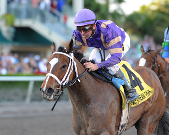 Jockey Ramon Dominguez, who picked up the mount on the front runner in the Breeders' Cup, retains the assignment and Hansen will face a couple of promising rivals, Algorithms and Consortium, who are making their stakes debuts in the Holy Bull. Algorithms rolled to a 5 1/4-length score when making his first start in a June 3 maiden special weight at Belmont Park, but wasn't seen again under silks until December 16, returning with a good-looking victory in a 6 1/2-furlong optional claiming event at Gulfstream. Javier Castellano rides for Todd Pletcher. Consortium easily won at first asking for Kiaran McLaughlin on November 12, posting a 4 3/4-length decision at Aqueduct, and then finished second as the favorite to Algorithms in the aforementioned optional claimer. He will keep John Velazquez in the irons. Algorithms and Consortium are both by Bernardini. Rounding out the Holy Bull field is Fort Loudon, who swept the Florida Stallion Stakes series before finishing seventh in the Breeders' Cup Juvenile; listed stakes victor My Adonis, who will be looking to rebound from a ninth in the Grade 3 Delta Jackpot; and recent turf maiden winner Silver Max.