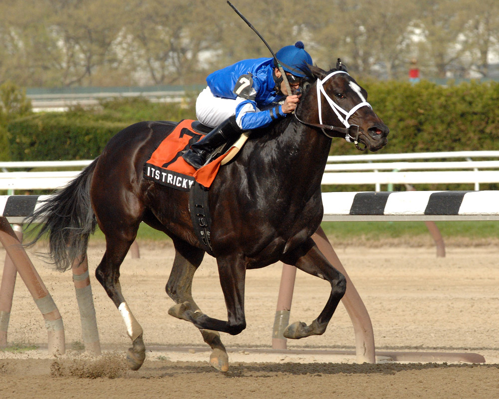 It's Tricky was in close contact just on the outside all the while but Castro gave her supporters something to worry about when he went to the whip rounding the turn. He kept steady pressure going on the multiple Grade 1 winner as Nicole H and Dontbeshy I'll Buy proved stubborn to her inside, but It's Tricky asserted her superiority when finally drawing off to finish seven furlongs on the fast track in 1:22 1/5. "She ran a mile and a sixteenth the time before, but she broke sharp and was right there. I had to keep her busy a little bit at the three-eighths, but when she was going, she was going. She was perfect in the stretch," Castro explained. C C's Pal bided her time in last throughout the Distaff, but came running late to pass all but the winner. It was 2 3/4 lengths back to Dontbeshy I'll Buy, who got the best of Nicole H by 1 3/4 lengths. White Merlot brought up the rear of the field, while Aquitania and Her Smile were both scratched. It's Tricky is now two-for-two on the year, though she appeared to have an easier time when taking the Grade 2 Top Flight Handicap in her four-year-old bow on March 3 over Aqueduct's inner surface. That was the Godolphin colorbearer's first win since taking the Grade 1 Coaching Club American Oaks last July at Saratoga. It's Tricky also posted victories in the Grade 1 Acorn Stakes and Busher Stakes during her sophomore campaign, but ended the year with a string of runner-up efforts in the Grade 1 Alabama, Grade 2 Cotillion and Breeders' Cup Ladies Classic. "That was very exciting and it's always encouraging to see these fillies when they come back from their three-year-old year into their four-year-old year," said Jimmy Bell, the Godolphin Racing Manager. "She's blossomed, she's grown up, she's given us the indication of being a little more professional each and every time over there. "As Kiaran had mentioned earlier, this is a cut back in distance, but the next race on the agenda is a one-turn mile and a sixteenth, so that's good. She's got what we all wish a lot of them had, she's got tactical speed and can use it at any time and carry it a distance of ground. She can do it short or long, she's certainly not one dimensional. "It's just great to seeing her happy, healthy and really interested in doing what she does best. This is another good step forward." With the winner's share from the Distaff 'Cap, It's Tricky boosted her lifetime earnings to $1,286,500 while her record now stands at 11-7-3-0. Bred in Kentucky by Stonerside Stable, the bay lass is out of the Grade 3-scoring Tale of the Cat mare Catboat, who is a half-sister to stakes-placed winners This Fleet is Due and Betty Garr. That trio's dam is herself a half-sibling to multiple Grade 3-placed stakes hero Northern Wolf.