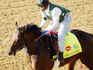 Trilogy Stable and Laurie Plesa's Itsmyluckyday galloped 1 1/2 miles under exercise rider Peter Shelton Tuesday morning at Churchill Downs.
