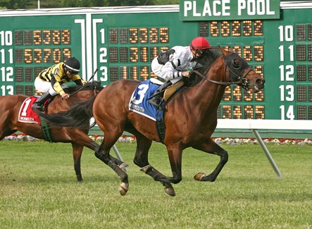 Hangover Kid made a strong move late along the rail to get up for second, a half-length over third-place finisher Winning Cause. Guys Reward, Screenplay, Finnegans Wake, Bad Debt, Dannhauser, Admiral Kitten, Hard Enough, Slim Shadey, Tetradrachm, 2-1 favorite Lochte and Tricky Hat brought up the rear. Tannery and Unbridled Ocean were scratched. Speaking of Which traveled 1 1/8 miles over the firm Monmouth Park turf in 1:46.32 and was just .42 off the track record set by They Call Me Giant on June 20, 2010. Sent off as the 7-2 second choice, he paid $9.60 for the score. The well-bred son of Invincible Spirit had shown real talent for Dermot Weld in 2012. After romping in the Gallinule at the Curragh in just his third career start, he concluded his Irish career with a third versus older horses in the Kilternan at Leopardstown. Speaking of Which shipped to Southern California for the Twilight Derby, where he looked home free before being nailed by Grandeur at the wire. He had much worse luck next time in the Hollywood Derby. Drafting just behind the leaders turning for home, he appeared to clip heels, checked badly, and never recovered, just loping home last. Speaking of Which subsequently joined Clement, but disappointed as the 7-5 favorite in the 2013 Fort Marcy. He rebounded from that last-of-six effort when outclassing allowance foes at Monmouth last June 21. Back up in class for the Man o' War, Speaking of Which made an early move before fading to seventh. The dark bay was not seen again until the November 10 Three Coins Up at Aqueduct, closing belatedly for fifth. Speaking of Which improved off that tightener, and was able to put it all together in his next start at Calder in the Tropical Turf Handicap in early December. Speaking of Which kicked off 2014 with a closing third in the Colonel E. R. Bradley Handicap at Fair Grounds on January 18 and was exiting a fourth-place finish in the Fort Mercy at Belmont last month. The Irish-bred Speaking of Which has now earned $327,903 from his 14-5-2-2 record. The dark bay is out of the unraced Mr. Prospector mare Suitably Discreet, making him a half-brother to the Group 2-placed Capital Exposure. Suitably Discreet is in turn a half-sister to Grade/Group 2 hero Century City, who placed in the 2002 Irish Two Thousand Guineas and 2003 Breeders' Cup Mile, as well as to stakes scorer Hidden Cat, dam of multiple stakes winner Global Power and stakes scorer Pegasusbystorm. Speaking of Which's second dam is Canadian Hall of Famer Alywow, who ranked as Canada's Horse of the Year, champion turf horse and champion three-year-old filly in 1994. Alywow was produced by Grade 3 victress Triple Wow, ancestress of Grade 3 victress Wow Me Free and 2012 Premio Parioli (Italian Two Thousand Guineas) winner Malossol. Further back in the family is current Pennsylvania Governor's Cup hero Tightend Touchdown, a dead-heat second in the November 2 Breeders' Cup Turf Sprint. Bet Horseracing Free Online at TwinSpires.com
