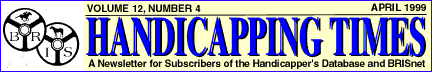 WIZARD Goes for a Three-Peat!Real Quiet \$18.80, Silver Charm \$10.00 The man who's given out the last 2 KY Derby winners is back with the Triple Crown Scouting Report. For only \$5 per week, the Wizard offers his exclusive insight into all of the Derby contenders as well as every prep race. And for those playing the KY Derby Future Book Wager, the Wizard provides an Odds Line, so you can tell which runners are overlays or underlays! Updated every Wednesday. On April 10 the WIZARD will be providing a special National Pick-3 report covering the three big Derby preps - Arkansas Derby, Blue Grass S., and Wood Memorial. Most tracks will be accepting wagers on this special event, but your edge will be in the special Wizard report, available for only \$10. Playing Keeneland? Try ONE FREE Kentucky Handicapper's Sheet! Online members enjoy one free KY Handicapper's Sheet during the month of April. It's America's Premier Selection Sheet, offering: