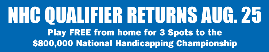 Here's how it works. There will be three satellites for the DRF/NTRA National Handicapping Championship: August 25, September 22, and October 13. In each of these three free online tournaments, the top 100 players will move on to the finals held on October 20. The top three finishers will each secure a spot to clash for the coveted title of Handicapper of the Year next January at Bally's in Las Vegas. Brisnet.com is picking up the tab for airfare, NTRA fees and hotel accommodations, a $3,500 value each! As always, it's FREE to play from the comfort of your home! The top three bankrolls based on hypothetical $2 win and place wagers will win their way to Las Vegas. Sign-up closes Saturday, August 25 by 1:59 PM ET, but don't delay. You only need to register once to participate in all three satellite events of the Challenge. Sign up FREE now! Visit www.brisnet.com/challenge for contest details, rules, and free registration. Customized contest cards, featuring all mandatory races in one download, will be available Thursday evening before each satellite event. A special contest analysis from the Wizard will also be offered online. * A Brisnet free membership and computer with Internet access required to participate. One free entry per member. To participate all contestants must register to play in these events regardless of participation in year's past or other online events.