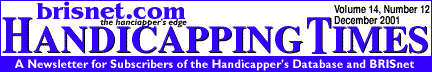 "The Prime Power Rating hit seven of 11 races. Selecting a Prime Power horse is what got me over the hump. I wagered $500 to win on him and he paid $10.80! Also, I hit four of five races in the preliminary rounds, and I couldn't have done it without the BRIS info in the Ultimate PPs." A. Burnett, Tampa Bay Contest Winner "Thank you for the win on Monarchos [using Prime Power]" K. Breithaupt "The Prime Power numbers are the best. I use that number alone to eliminate half the field. The majority of winners come from the higher Prime Power numbers and many offer good value. Keep up the good work." C. Moore "The new Power Search Reports may be the best value on the net. I am amazed at the new and