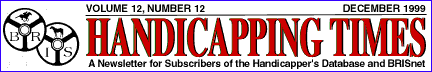 PACE RATINGS LED THE WAY TO \$10,000!It was a great finish to a great contest. Mark Weatherton of North Little Rock, Arkansas was actually one win behind Michael Berry heading into the Challenge finale, a stakes at Turf Paradise. Mark nailed the winner, and since he had a high win mutual of \$75 during the four weeks, he won the tiebreaker and the \$10,000 grand prize. Both of them along with Paul Capozzi and Bradley Uffelman head to Las Vegas in January to represent BRIS and compete for \$200,000 in prizes.All four of the finalists were using BRIS Past Performances in their handicapping, and one of the four also utilized the Scratch Sheet and Wizard's Analysis. Mark, a college professor of Audiology, credits one of the unique BRIS PP features as a key to his success. "During the Challenge I used the BRIS PP's and loved the pace data, which I am too lazy to compute. The Pace Ratings are essential in helping me evaluate just how a race will setup." Interestingly, Mark took up handicapping only a few years ago. "One day on my way to a flea market I chanced to pass Oaklawn Park with a flashing simulcast sign and \$1.00 parking, stopped in and fell in love with handicapping. After a couple of years, I started entering local tournaments, which I have a win and a place so far..." The story of our Grand Prize winner was recently written up in the Arkansas Democrat-Gazette: "Weatherton recently took on the world in the Bloodstock Research Information Services handicapping challenge.... BRIS offered trips to Las Vegas for the four top finishers, all of whom qualified for the national championship, which is sponsored by Daily Racing Form and sanctioned by the National Thoroughbred Racing Association. But the \$10,000 cash prize only went to the winner. "You know, I was telling people that the money was real nice," Weatherton told Gazette writer Jeff Krupsaw, also a BRIS subscriber, "but the one thing it did for me, particularly because I haven't been doing it very long, is that it validated the time and effort I've spend doing this type of thing [handicapping]." Well, hard work paid off for this college professor, who leads a group of four outstanding handicappers to Vegas to compete in the world's toughest handicapping contest January 7 and 8, 2000. We wish them the best of luck, and also thank each and every one of our customers who participated in our inaugural challenge. Thank you!