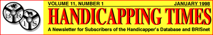 (to view the Ultimate examples, please print this newsletter) OTHER VALUE-ADDED STATS -- contained with in Ultimate PP's include Early and Late Pace Ratings, Pace and Speed Pars, Expanded Workout Lines and much more! So, don't delay. The PDF files will remain absolutely FREE through January 31, 1998.