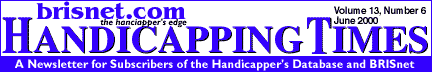 Follow the Leader!Do you ever get a little overwhelmed handicapping the Derby? It seems everyone has a different formula for picking the Derby winner. Often these formulas conflict and contradict each other. Many of these same rules would have actually eliminated this year's winner Fusaichi Pegasus. At BRISnet we subscribe to one rule - winning. Applying our rule to the Derby, you could come to only one conclusion - BRISnet products work. Our Prime Power rating, found in our Ultimate PP's, Super Stats, MultiCaps and ALL-Ways, overwhelmingly pinpointed Fusaichi Pegasus as the winner. It gets better. By following the Wizard's wagering strategies, you would have hit a $66 exacta, a $435 trifecta and had your 3rd Derby winner in the last 4 years. The Wizard wasn't the only one to peg the Derby Winner; so did Insider Picks & Power Plays, the Scratch Sheet Handicapper's Edge. Finally, if you downloaded A.J.'s Finish Line to watch the 2000 Guineas on Derby Day, you were treated to a huge exacta. With the Belmont only a week away, focus on what's important - winning. Follow the Leader BRISnet.com.