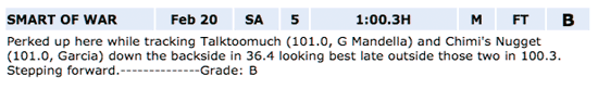 Huge $40.00 longshot winner Smart of War (in the final race of the day) was dropping in class and coming up to the race with a strong 5 furlong drill: