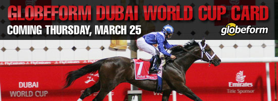 SEE INSIDE THIS MONTH'S ISSUE FOR... This is the biggest special we have ever offered on the Brisnet.com Archive Server. During the entire month of March, the prices have been slashed in half on all past software entry and result data files. The Archive Server is the only place where you can find old Brisnet.com data files going back as far as 1997. It's the perfect tool to tap into to complete or build a racetrack database. Choose from files such as ALL-Ways, Neurax Pro, single-file and multi-file past performance files, and more! For example, exotic result datafiles on the Archive Server are only $0.13 a piece! If you have a large order to place, please contact Bobby Rosenberg at bobby.rosenberg@brisnet.com or 859-219-4607. Visit the Archive Server today! Get in-depth analysis of the richest day in horse racing from the popular international source, Globeform. Each race is covered in detailed and includes the popular Globeform ratings and horse profiles on every entry. Here is the lineup for the morning of March 27 on the richest day in all of horse racing: DUBAI WORLD CUP DAY, MARCH 27