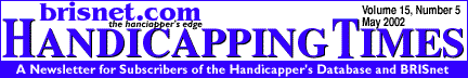 KENTUCKY DERBY WINNING SELECTIONSBrisnet.com is your only source for value-added information plus complete coverage of this year's Kentucky Derby. From great pedigree data to superior performance ratings, Brisnet.com has it all! Here's a brief look at our comprehensive Derby menu: FREE DAILY NEWS Each day race fans from across the globe visit racing's top online newsletter, the Handicapper's Edge. Serious handicappers enjoy the up-to-the-minute coverage of the Triple Crown every day now through June. Each issue is packed with the latest happenings, jockey and trainer quotes, workout details, and so much more. Stay on top of your favorite sport and the road to the Derby with the FREE Handicapper's Edge, compliments of Brisnet.com. ULTIMATE PPs & ENTRY REPORT As the name implies, Ultimate PP's is racing's most complete past performance product, offering stats for the Jockey, Trainer, Sire & Dam, and more! Ultimate PPs will be available with post positions on Wednesday night, May 1. In addition, all entry Brisnet.com reports will be available, so log on and download your favorite Brisnet tool. PRIME POWER Prime Power looks to make it a three-peat on May 4. The top ranked horse has won the last two runnings of the Derby, and this includes longshot winner Monarchos! Some of our most popular files include the incredible Prime Power Ratings: Ultimate PPs, Quick Play PPs, Power Search, ALL-Ways, Super Stats, and MultiCaps. Download one of those reports/data files and find out which horse is tops on Prime Power. GREAT SELECTION SHEETS If you want to stack the odds in your favor, then you need to use WINNER'S CHOICE. Each selection sheet is filled with powerful handicapping angles such as key races, exceptional workouts, hot trainer/jockey combos, 3 Star Best Bets and much more. Why not do yourself a favor and pick up Winner's Choice for Derby Day. Only one handicapper follows Bluegrass racing all year long, the KENTUCKY HANDICAPPER. Devoting his time exclusively to Kentucky racing, the Kentucky Handicapper has intimate knowledge of what it takes to win on Derby Day. Download the Kentucky Derby and the full undercard for only $3.00 on Thursday, May 2. Don't miss his complete KY Oaks coverage on Friday, May 3! NOBODY BEATS THE WIZARD! Tap into the knowledge of America's most celebrated handicapper, the Wizard. Depend on somebody who has made his living playing the ponies for nearly 30 years. For only $8.00 the Wizard will share his in-depth analysis and wagering strategies for Derby Day. He's hit three of the last five winners, including longshot Real Quiet! Make a clean sweep of the 2002 Triple Crown with Wizard reports for the Preakness and Belmont. Check out our Derby Report Menu today! FAX SERVICE Anytime you are away from your computer, BRIS can still accommodate your handicapping needs. Call 1-800-354-9206 for our fax or overnight mail service. |