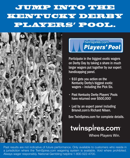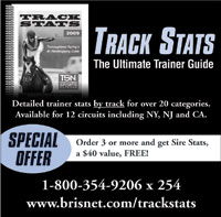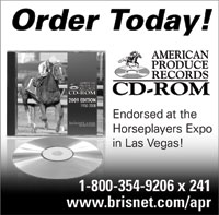SEE INSIDE THIS MONTH'S ISSUE FOR... >> Conquer the Derby with Brisnet.com From updated daily news in the FREE Handicapper's Edge to superior performance ratings in the Ultimate PPs, Brisnet.com has the tools you need to conquer the Run for the Roses. The Kentucky Derby is only days away, and our full-card reports will be online beginning Wednesday evening, April 29. Let's take a look at how the Brisnet.com data and information can help you score on the big race day. The Ability to Win the Derby The Class and Speed ratings found in reports such as the Ultimate Past Performances and ALL-Ways data files are the keys to determining which runners have the ability to win. The Derby winner each year seems to be found among the top BRIS ratings. Longshots Charismatic and War Emblem entered the race with one of the top BRIS Speed Ratings, and War Emblem came in off a monstrous, triple-digit Late Pace Rating. Don't overlook runners that have earned competitive, triple-digit numbers in one of their most recent two starts. Predict the Pace Scenario Although horses don't always run to what's on paper, BRIS Pace Ratings give handicappers the best chance to accurately predict the expected pace setup. It doesn't matter if it's $4,000 claimers at Penn National or the Kentucky Derby; BRIS Pace Ratings are a critical handicapping tool to visualize how the race will be run. Identify the Runners Training Well You can rely on the workout information everyone has access to, or you find the answers in the FREE Handicapper's Edge Newsletter. Start your day, every day, throughout the Triple Crown season by reading this great online newsletter. Only the Edge offers comprehensive daily coverage of all the expected runners, including detailed workout reports and pre-race quotes from the connections. Know the Prevailing Track Bias The Ultimate Past Performances includes the Track Bias and Race Summary page, which details how the track has played this meet and the past week. You'll quickly see which running styles and post positions are winning most frequently at each distance and surface. Quite often, an important trend is easily spotted, and this can be especially pertinent when handicapping all the great races on the Kentucky Derby undercard. Who Can Get the Distance? The Ultimate PPs provide the AWD (average winning distance in furlongs) for both the sire and dam's sire of each runner. The higher the AWD, the greater the stamina in the pedigree. A runner with AWDs higher than 7.0 on both sides of the pedigree indicate an inherent preference for route races. An 8.0 or higher on either side of the pedigree indicates a strong source of stamina. Both the American Produce Records (APRs) and Maiden Stats CD-ROMs provide the necessary sire and dam data to accurately analyze each runner's pedigree. A staple in the Thoroughbred breeding industry, the APRs is the absolute best tool for researching the female side of the family. Both CD-ROMs for 2009 were recently released and available through the online bookstore at Brisnet.com. Get the Advantage! No other site offers the same wealth of information, so choose Brisnet.com for all your handicapping needs this Triple Crown season. Brisnet will also have complete coverage of the Kentucky Oaks which is run Friday, May 1. This is always a great betting race, and is complimented by an outstanding stakes-filled undercard at Churchill Downs. Mark your calendars - superior information for the Run for the Roses goes live on Wednesday night, April 29. ONLINE DAILY: FREE Handicapper's Edge coverage ONLINE WEDNESDAY NIGHT: Ultimate Past Performances ONLINE THURSDAY NIGHT: Wizard's Pick of the Day The Race of the Day contest concluded late last month, and regular player Al Vasco from North Carolina was the recipient of the trip for two to this year's Kentucky Derby. With no "live racing" near him in North Carolina, Al was thrilled to be this year's winner. He and his wife will be attending their first Run for the Roses. The new Race of the Day contest has commenced. Log on and register for your chance to win a Breeders' Cup VIP package to the spectacular Wynn Las Vegas resort. Congratulations also go out to Dennis Bright of California who won the $60,401.64 grand prize in TwinSpires.com Handicapping Open Championship on April 4. "I felt like I was in the movie 'Let It Ride' towards the end of the contest," explained Dennis. "I was in fourth going into the final race and hit the longshot at Santa Anita. The person right behind me was also on the same runner, so I edged him by $.80 for the grand prize. I am not a big bettor, so this weekly $25 contest is a great way to bet a little to win a lot." "I wrote my own handicapping program years ago. I use that program in conjunction with the Brisnet Ultimate Past Performances. I rely on the Ultimates to verify my software selection." Dennis is not new to winning contests. Many years ago, he teamed up with a friend to win a big tournament at the old Flamingo Hotel in Reno, Nevada, where they split $54,000. Handicapper Art (Chester) Parker lost the grand prize by only $.80, but he was very appreciate to have $16,261.98 placed in his wagering account. "I love TwinSpires. You guys have done a tremendous job with your wagering site. I love the fact that you are together now with Brisnet. I rely on the Brisnet information, which I find is more thorough and comprehensive than other sources. The Ultimate PPs make it easier for me to see how the race is going to unfold." Art also commented that the standings were extremely tight, and that everyone in the top 20 of the Handicapping Open finals gave a great performance. Racing's richest online handicapping tournament is set to resume some time after June. The WIZARD continues to prove why he has had such a loyal following over the past 20 years. From late December to mid April, the Wizard has nailed over 50% winners at a flat bet profit with his popular Pick of the Day sheet. And this doesn't include the 