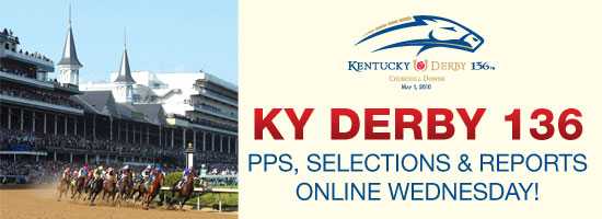 SEE INSIDE THIS MONTH'S ISSUE FOR... Brisnet.com is the Official Handicapping Source for the Kentucky Derby and TwinSpires.com, so why rely on anything else? Kentucky Derby 136 is here, and as always, the Friday/Saturday known as Oaks and Derby weekend represents some of the best wagering opportunities of the year. Official full-card reports and expert handicapping analysis are available for download beginning Wednesday, April 28! From updated daily news in the FREE Handicapper's Edge to superior performance ratings in the Ultimate PPs, Brisnet.com has the tools you need to successfully tackle the Run for the Roses. This year we have added several new services and reports. See inside this Handicapping Times newsletter for information we will be producing via our Live Chat and social networks that you will not find anywhere else!