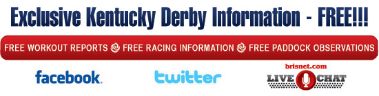 The Kentucky Derby Pedigree Profiles takes an in-depth look at the families of the contenders' sire and dam for the Run for the Roses. Written by Avalyn Hunter, Alan Porter, Tom Hall, and Evan Hammonds of the Blood-Horse, the profiles also include a five-cross pedigree chart, TrueNicks ratings, and Ultimate Past Performances to help you zero in on the winners. This year's package will also include a Leading Sires Report for the racetrack, e.g. Churchill Downs for the Derby. This is the best pedigree analysis you'll find anywhere. BONUS: Buy the Derby and Preakness reports, and you'll get the Belmont Stakes for free. You'll get all 3 pedigree reports for the price of 2! Get insight into the pedigree of this year's Triple Crown contenders for only $19.95! Or, order just Kentucky Derby Pedigree Profiles & Sire Analysis for only $9.95. Order now and receive a FREE Kentucky Derby Preview Edition! Start researching your Derby contenders with the early preview edition. The Post-Draw edition will be available April 29th, and you will not be charged a second time for the updated Derby report. Now, for the first time, you can handicap the Calder and Churchill cards and chat live one-on-one with the Brisnet.com staff of expert handicappers. Pick up valuable nuggets of information on what is happening in real-time at the track, and pose any questions you may have to the handicappers. While you're chatting, watch and wager on the brand new HD signal at TwinSpiresTV! The Brisnet.com Live Chat for Calder begins opening day, Sunday April 25 and will continue on select weekend days into May. Dennis Tiernan may not be a household name but he is widely considered within the industry to be one of the best private clockers in the game. Dennis, who has been invited to participate in the TwinSpires Players' Pool for Derby Day, is a professional horseplayer who relies on his expert knowledge and hard work. Dennis will be clocking in Louisville in the weeks leading up to the huge weekend. What's it to me? Exclusively through the Brisnet.com social networking sites (Facebook, Twitter) and the Brisnet.com Live Chat, viewers will gain access to his indepth workout report for both the Kentucky Oaks and Kentucky Derby cards! Absolutely FREE! You're not going to want to handicap the Churchill Downs' cards those days without Dennis Tiernan's morning insights. "Wait, there's more! Rich Nilsen, five-time tournament winner and Brisnet Marketing Director, will be tweeting live from Churchill Downs on both Oaks and Derby day. Rich will be posting vital racing information, such as track bias observations and much more, throughout the day on both Twitter and Facebook. If that wasn't enough, the Wizard is flying in from his home base of Connecticut to do paddock observations for each and every race Friday and Saturday. Only a select few individuals can see the horses up close in the Churchill paddock, and the Wizard will be there for Live Chat viewers to offer this insight. How do I access this free information? Visit www.facebook.com/brisnet or www.twitter.com/brisnet to take advantage. The beauty of both of these social networks is that you can get the information streamed to your mobile device in the event you're away from your computer. Also, don't forget to stay logged into the Brisnet.com Live Chat on both days. Brisnet is looking to make this a memorable and profitable Kentucky Derby for you!