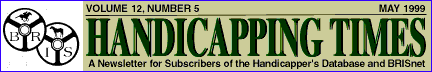 Get the Derby Edge Here!Imported runners from half way around the world, talented fillies who have yet to face the opposite sex, and the annual confusion surrounding the Kentucky Derby -- how does one seperate fact from fiction and pick this year's winner? As always, BRIS has the answers! From our exclusive Class, Pace & Speed figures to detailed pedigree data, Bloodstock Research has it all! Nowhere else will you find such a powerful, comprehensive menu for playing the Triple Crown races: TRIPLE CROWN NEWS & NOTES (NEW!) Our popular website, www.brisnet.com, offers a valuable new service. The new Triple Crown News & Notes page features timely news items, workout information, updated pedigree info, handicapping articles and quick access to BRIS handicapping reports. Check it out on the internet everyday! FREE Handicapper's Edge Racing fans have come to rely on the HANDICAPPER'S EDGE daily newsletter for its pertinent Triple Crown news. The industry's best newsletter keeps getting better. The Edge now offers some new features, with more to come: * "They Said It" -- invaluable quotes from trainers and jockeys. * Detailed "Carryover Watch" -- advice on playing major Pick-6 carryovers. And don't miss the Track Bandit's analysis of the KY Derby on Friday night. He is redhot, having recently nailed the Florida Derby trifecta in exact order! ULTIMATE PP'S Official Derby field with post positions available for all entry reports, including the Ultimate PP's, on Wednesday night, April 28. Start handicapping days ahead with the handicapper's best weapon - the Ultimate Past Performances. BRIS Class, Pace, & Speed Ratings and Pedigree statistics are valuable tools for handicapping the Kentucky Derby. If you took advantage of the giveaway back in January and February, then you know how important the Ultimate PP's are to your handicapping. Download BRIS handicapping reports for the Preakness on Wednesday night, May 12. Let BRIS Do the Work! Take advantage of the nine handicapping packages offered by BRIS and let the computer do the work for you. Download any of the programs FREE from the Handicapper's Library on direct-dialup or from the FREE SOFTWARE page at www.brisnet.com. INSIDER PICKS & POWER PLAYS will also do the work for you by identifying powerful angles such as key races, exceptional workouts, hot trainer/jockey combos, and much more. Last year, the Clocker's Special Power Play angle nailed the \$291.80 boxed exacta in the Derby! It pinpointed the three horses working the best over the Churchill oval -- Artax, Victory Gallop, and Real Quiet! Also, Insider Picks & Power Plays now offers 3 Star Best Bets, a selection method that hits over 40% winners! You will want to know if there are any best best on the Derby card. Few handicappers know Kentucky racing as well as the KENTUCKY HANDICAPPER, who will be covering the entire Derby card at Churchill Downs. Download these expert selections for only \$3 on the Thursday, April 29. GOING TO THE DERBY? If you are away from your computer, BRIS can still accomodate your handicapping needs. Call 1-800-354-9206 for our fax or overnight mail service.