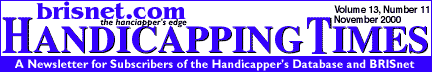The Biases of Churchill DownsBy Richard Nilsen Thanks to our comprehensive database at BRIS, we've uncovered a few stats regarding the track bias at Churchill Downs. Looking at data back to the Fall meet in 1997, I analyzed some of the different distances involved in the Breeders' Cup based on the appropriate age group. Here are the findings: SIX FURLONGS (354 races): No surprise here - the more speed you have, the better your chances at winning. The success rate gradually diminishes from Early types (E) down to Sustained closers (S). The average beaten lengths of the winner is 2.4 lengths at the 1st call and 1.9 lengths at the 2nd call. In fact, 70% of the winners are among the first three at the half mile. The rail (one hole) has been good, winning at a 14% clip. ONE MILE, TURF (84 races): Early/Pressers (E/P) and Pressers (P) have the best chance at success. Sustained types often don't get up in time, and frontrunners usually don't hang on. The typical winner is found 3.5 lengths behind at the 1st call and 2.1 lengths behind at the 2nd call. Inside posts, especially the two and three hole, have the preferred draw. 8 1/2 FURLONGS (54 Juvenile races): Only 13% of the two-year-old races run at 1 1/16 miles have been taken wire to wire. Early/Pressers (E/P) and Pressers (P) have the best chance at success. Sustained types win far fewer races than expected. The average beaten lengths of the winner is 4.1 lengths at the 1st call and 2.3 lengths at the 2nd call. Post position has not been much of a factor. That is very surprising given the short run to the first turn, and the fact that it is the first two-turn race for many youngsters. NINE FURLONGS (24 races): Finally, a distance where closers excel. Although Early types hold their own, the slight edge goes to Sustained closers. Interestingly, post position tends to matter here. The outside posts (8 and beyond) win on average only 2% of their starts. Compare that to the middle posts (4 through 7) which win on average 22% of the starts. There must be something to the bank of the racetrack and the positioning of the starting gate that seems to give a built-in advantage to certain posts. TEN FURLONGS (11 races): Early/Pressers (E/P) and Pressers (P) have dominated here based on a small sample, which includes three runnings of the KY Derby. The typical winner is found several lengths off the lead, averaging 5.3 lengths behind at the 1st call and 4.2 lengths behind at the 2nd call. You want a horse that figures to be in mid-pack but has some tactical speed. More than half the winners were on the lead by the time they hit the top of the stretch. The inside posts hold a slight advantage.