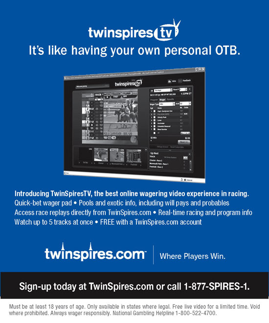 The Internet's best handicapping newsletter, the daily Handicapper's Edge, and the Wizard were the source of some nice scores over Breeders' Cup XXV weekend. During the Breeders' Cup the Edge editorial staff covered each of the 14 races. Several winners were given out, but none more impressive than Vance Hanson's selection of Desert Code in the Breeders' Cup Turf Sprint. Other nice scores included the $107.20 reverse exacta in the Breeders' Cup Turf from International Racing expert Kellie Reilly. TURF SPRINT from the Handicapper's Edge NewsletterRightly or wrongly, the approach I took in scooping out this race was to give extra credit to those who have positive experience over this unique downhill course, which also requires a brief crossing over the main track. 1st -- DESERT CODE (E Dubai), who was on the also-eligible list when pre-entries were announced, is now in the main body of the field after the defection of Tropic Storm (Stormy Atlantic). The bettor in me is probably pushing aside the more thoughtful handicapper in landing on this choice, but the fact is that on his best day he is as capable as anyone else in the field, not to mention a three-time winner over this course and distance. Granted, he's run some detestable races down the hill, including the Morvich H. (G3) last time, but our belief is that he is capable of better. Returning from a layoff in the Morvich, he engaged eventual winner CALIFORNIA FLAG (Avenue of Flags) from the start and lost that battle of wills in what turned out to be a course-record performance for that rival. Looking back on his past performances, however, we see a colt capable of sitting off the pace and saving his best run for the end, the kind of move that propelled him to wins in the Baldwin S. (G3) as a three-year-old and in the Joe Hernandez S. last March. The WIZARD'S RED HOT PICK OF THE DAY does it again. Wizard's selection of Goldikova crushes her male rivals and keys winning $27.20 exacta 4 times! The Wizard has selected over 45% winners from his Pick of the Day selection since late August. It's his best bet from across the country on a daily basis. Here was THE WIZARD'S write up on the Pick of the Day: # 4 GOLDIKOVA Goldikova has earned the distinction of being the horse to beat in the BC Turf Mile. In 8 career starts she has 5 wins, 2 seconds, and a third. She has raced against the finest milers in the world, and one of the greatest fillies of all time, the undefeated 3 year old Zarkava, winner of this year�s Prix de l�Arc de Triomphe at Longchamp. Goldikova was beaten 2 lengths when second in her first meeting with Zarakava in a Group 1 stake, despite stumbling leaving the gate. When they met again, Goldikova, finished third in the group 1 French Oaks at a distance that was too far for her in her only career race beyond a mile. Since that race she has reeled off 3 straight wins. Her last 2 victories have come in Group 1 events. In the Prix du Moulin de Longchamp she defeated the top class Darjina, and multiple G1 winner Henrythenavigator was left in her wake, checking in fifth. He came back to run a close second to Ravens�s Pass September 27 at Ascot, in the prestigious G1 Queen Elizabeth Stakes. Both are entered in the BC Classic, and both are threats to Curlin. Goldikova enters the Mile off 48 days of rest, which should have her razor sharp. Goldikova is at her best when she can stalk the pace or rate in mid-pack, then make her move approaching the stretch. When she hits the stretch, Goldikova has a huge stride and a powerful burst of acceleration. Like any European, she must overcome the tight turns at the mile distance and a firm grass course. It�s interesting to note that her trainer Freddie Head won the BC Mile 3 times as a jockey, twice aboard the legendary Miesque, This year�s BC Mile in not a stellar field, especially with Raven�s Pass and Henrythenavigator electing to go in the Classic. As a result, the U.S. milers are vulnerable to a top class European. That invader is Goldikova. With a clean trip, she will be very tough to defeat. [Click Here] - Updated on the 1st of every month Please note: If you no longer wish to receive newsletters, special offers, and announcements from this service you can unsubscribe from this notification service by clicking here or if you are reading the text version of this message, contacting us at this address: http://www.brisnet.com/cgi-bin/unsub.cgi?src=bb&ra=removaladdress&sub_group=bris-news-times Brisnet.com, P.O. Box 4097, Lexington, Kentucky 40544-4097 |