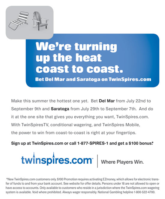 September, 2009 VOL. 23, NO. 9 SEE INSIDE THIS MONTH'S ISSUE FOR... >> Travers Stakes Reports - Now Online Now that Rachel Alexandra has opted for the September 5 Woodward Stakes to take on older males, can stablemate KENSEI step up and take the Jim Dandy-Travers Double? Will MINE THAT BIRD continue his surprising year by taking the Midsummer Derby? Can QUALITY ROAD stretch out off one 6 1/2-furlong prep and prove he is still the best 3yo in the country. Or, will the Nick Zito-trained newcomer OUR EDGE upset the applecart? Log on to Brisnet.com now for superior information on the 140th running of the prestigious Shadwell Travers Stakes. There is always a great undercard to bet on, and full-card wagering is available at TwinSpires.com. ESPN will have live coverage of the Travers beginning at 4:30 p.m. ET. Reminder that there is an early post time of 11:45 a.m. ET. From ALL-Ways software data files to Ultimate PPs to Wizard selections, Brisnet.com has you covered for this great day of racing. Click here for Saturday's reports. The weekly "Wild, Winning Wednesdays" specials continue for the next three weeks, and next up for race date September 2 is a giveaway of all Quick Play page saver PPs for that date. Save paper, time, and ink with the revolutionary Quick Play PPs which offer most races on only two pages! Print an entire card in under 20 pages, while at the same time, not missing out on many of the great value-added ratings from BRIS. Visit us online each week for an exciting, new giveaway with "Wild, Winning Wednesdays" at Brisnet.com, now through Sept. 16. How do I take advantage?There will be a link from the homepage at Brisnet.com. This will take you to a special page announcing the giveaway for the day's races. The free product(s) may be for Wednesday's races or race cards later that same week. Time is running out to play the new Race of the Day contest. Log on and register for your chance to win a Breeders' Cup VIP package to the spectacular Wynn Las Vegas resort. One solid piece of handicapping advice is to never bet against a legitimate favorite. Another solid piece of handicapping advice is to �never� bet on a legitimate favorite.� What? That�s right. In almost every case, it is best to pass the race than to bet on or to bet against a legitimate favorite. The key to successful handicapping is to identify, in advance, the two out of three races that are not won by the crowd favorite and to identify the two non-favorite horses most likely to beat the favorite. This article will be a big help in this area as it includes solid ideas to help you classify a favorite as legitimate, vulnerable or false. So, let�s get started. [Read the whole article - click here] [Click Here] - Updated on the 1st of every month Please note: If you no longer wish to receive newsletters, special offers, and announcements from this service you can unsubscribe from this notification service by clicking here or if you are reading the text version of this message, contacting us at this address: http://www.brisnet.com/cgi-bin/unsub.cgi?src=bb&ra=removaladdress&sub_group=bris-news-times Brisnet.com, P.O. Box 4097, Lexington, Kentucky 40544-4097 |