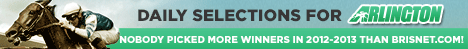 Data provided or compiled by Equibase Company, which includes data from The Jockey Club, generally is accurate but occasionally errors and omissions occur as a result of incorrect data received by others, mistakes in processing and other causes. Equibase Company and Bloodstock Research Information Services, Inc. and Thoroughbred Sports Network disclaim responsibility for the consequences, if any, of such errors, but would appreciate being called to their attention.