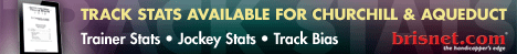 Data provided or compiled by Equibase Company, which includes data from The Jockey Club, generally is accurate but occasionally errors and omissions occur as a result of incorrect data received by others, mistakes in processing and other causes. Equibase Company and Bloodstock Research Information Services, Inc. and Thoroughbred Sports Network disclaim responsibility for the consequences, if any, of such errors, but would appreciate being called to their attention.