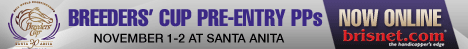 Data provided or compiled by Equibase Company, which includes data from The Jockey Club, generally is accurate but occasionally errors and omissions occur as a result of incorrect data received by others, mistakes in processing and other causes. Equibase Company and Bloodstock Research Information Services, Inc. and Thoroughbred Sports Network disclaim responsibility for the consequences, if any, of such errors, but would appreciate being called to their attention.