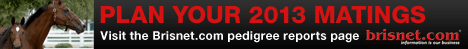 Data provided or compiled by Equibase Company, which includes data from The Jockey Club, generally is accurate but occasionally errors and omissions occur as a result of incorrect data received by others, mistakes in processing and other causes. Equibase Company and Bloodstock Research Information Services, Inc. and Thoroughbred Sports Network disclaim responsibility for the consequences, if any, of such errors, but would appreciate being called to their attention.