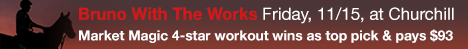 Data provided or compiled by Equibase Company, which includes data from The Jockey Club, generally is accurate but occasionally errors and omissions occur as a result of incorrect data received by others, mistakes in processing and other causes. Equibase Company and Bloodstock Research Information Services, Inc. and Thoroughbred Sports Network disclaim responsibility for the consequences, if any, of such errors, but would appreciate being called to their attention.
