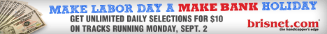Data provided or compiled by Equibase Company, which includes data from The Jockey Club, generally is accurate but occasionally errors and omissions occur as a result of incorrect data received by others, mistakes in processing and other causes. Equibase Company and Bloodstock Research Information Services, Inc. and Thoroughbred Sports Network disclaim responsibility for the consequences, if any, of such errors, but would appreciate being called to their attention.