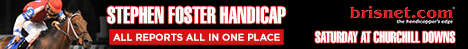 Data provided or compiled by Equibase Company, which includes data from The Jockey Club, generally is accurate but occasionally errors and omissions occur as a result of incorrect data received by others, mistakes in processing and other causes. Equibase Company and Bloodstock Research Information Services, Inc. and Thoroughbred Sports Network disclaim responsibility for the consequences, if any, of such errors, but would appreciate being called to their attention.