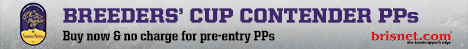 Data provided or compiled by Equibase Company, which includes data from The Jockey Club, generally is accurate but occasionally errors and omissions occur as a result of incorrect data received by others, mistakes in processing and other causes. Equibase Company and Bloodstock Research Information Services, Inc. and Thoroughbred Sports Network disclaim responsibility for the consequences, if any, of such errors, but would appreciate being called to their attention.