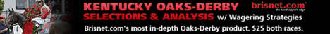 Data provided or compiled by Equibase Company, which includes data from The Jockey Club, generally is accurate but occasionally errors and omissions occur as a result of incorrect data received by others, mistakes in processing and other causes. Equibase Company and Bloodstock Research Information Services, Inc. and Thoroughbred Sports Network disclaim responsibility for the consequences, if any, of such errors, but would appreciate being called to their attention.