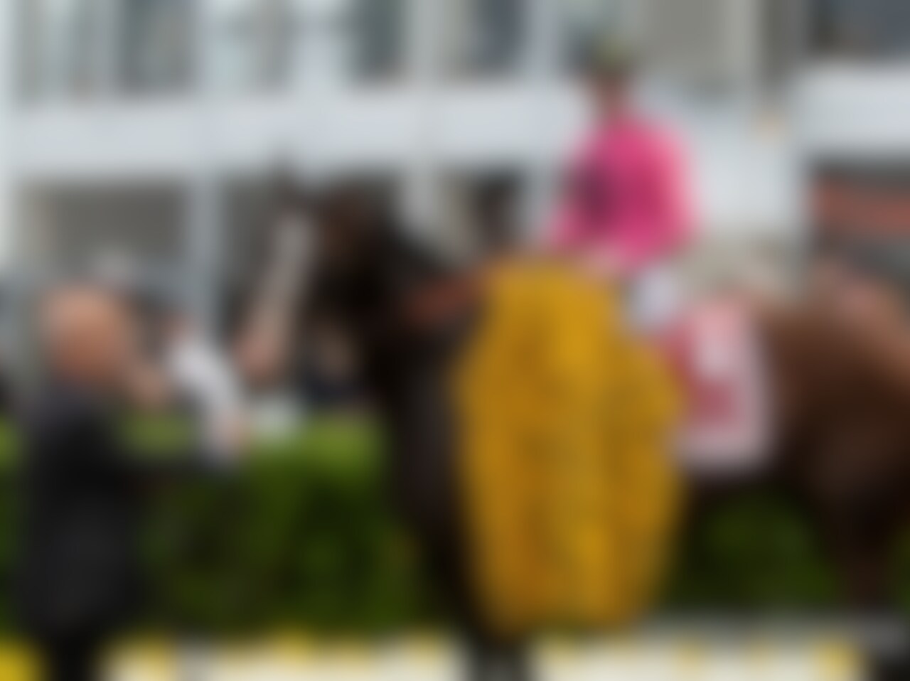 War of Will draped in the 2019 Preakness black-eyed susans (c) Horsephotos.com/Cecilia Gustavsson