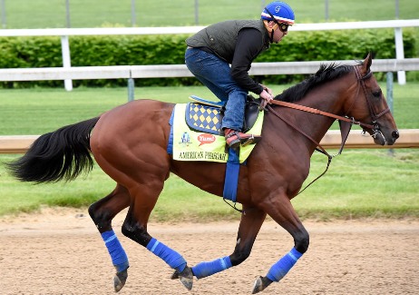 Because his colts American Pharoah (Pioneerof the Nile) and Dortmund (Big Brown) are the 5-2 first and 3-1 second choices on the Kentucky Derby (G1) morning-line, Hall of Fame trainer Bob Baffert spent time Thursday morning answering questions about a 1-2 finish. That ended up as a prime topic after the colts galloped 1 1/2 miles over Churchill Downs main track. It has been 67 years since stablemates Citation and Coaltown made Derby history with their top-two finish in 1948. Baffert threatened to match that result in 1998 when Real Quiet was first and Indian Charlie was third. "Turning for home they were 1-2. It was a really good feeling that I had," Baffert said. "Victory Gallop came and split us at the end. He could have easily won. He had a tough trip.